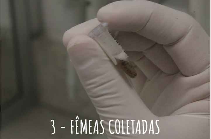 As fêmeas de Aedes aegypti coletadas são colocadas em tubitos e enviadas para análise laboratorial para saber se estão com vírus da dengue, zika ou chikungunya